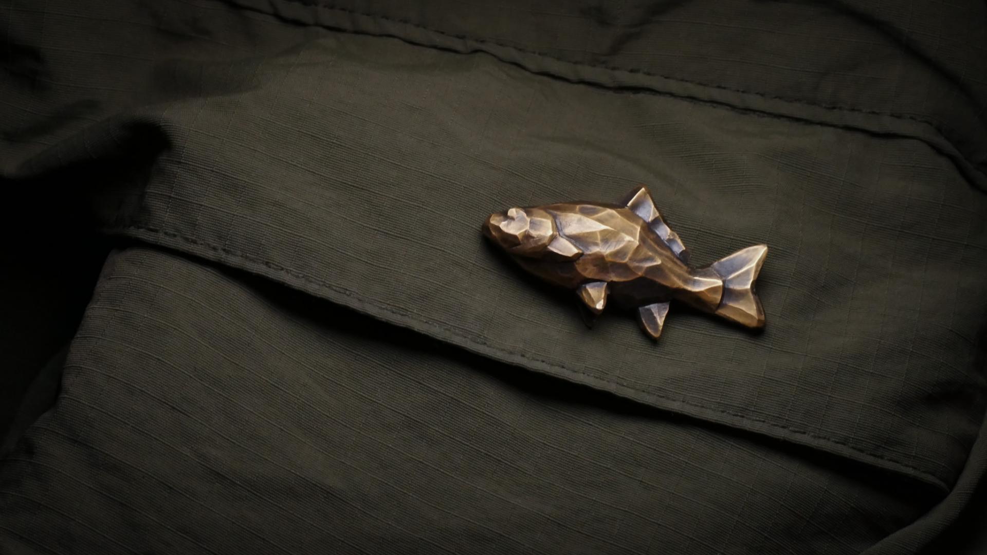 Carp from the Fish Collection; Add style to your fishing look by attaching it to your bag, vest or hat with an easy screw-type badge.